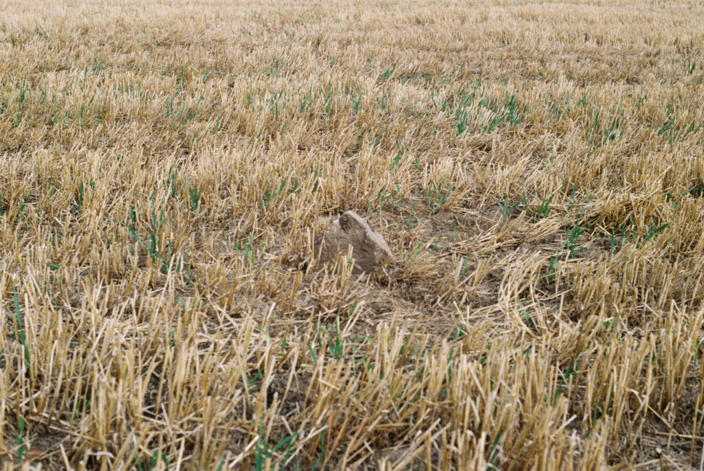 Stein der mittelalterlichen Klostermauer im Feld//Stone of the medieval Monastery Wall in the Field. Pluscarden Abbey, Herbst 2025.
